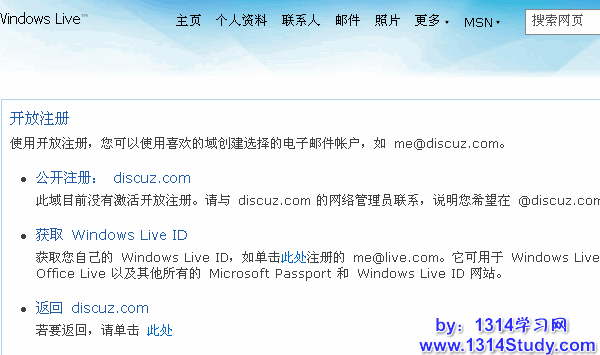 企业邮局是采用 Windows Live 管理中心技术实现的邮局功能,可以为论坛用户提供以论坛自有域名为后缀的电子邮件,即时通信等服务。开启这个功能之后,会员就可以申请设置的域名的邮箱。下面分三个方面介绍一下这个功能。