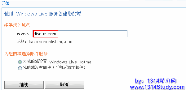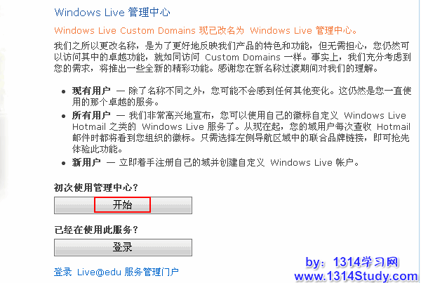 如果需要注册的话,访问 http://domains.live.com/,点击开始