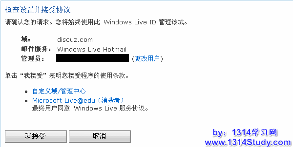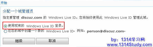 设置管理这个域名的 Live ID