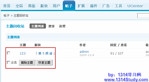 很多站长为版主删除帖子而困扰,因为可能版主一时疏忽或者跟帖子作者闹矛盾,而滥用自己的权利,将帖子删除了。作为站长,这是他们最不想看到的情况,那怎样避免和防止这种情况的发生呢?很显然,版主在其管理的版块里删除帖子是很合情合理的事情,如果删除了帖子,管理员还能将删除的帖子恢复,那样就最好不过了。Discuz! 的主题回收站就是这个功能,将前台删除的主题先放到主题回收站里,以便管理员进一步确认是否删除。