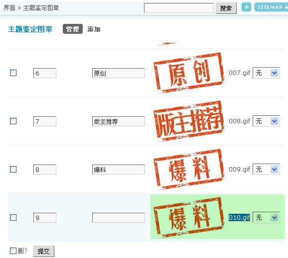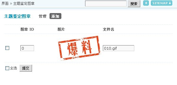 2、后台 => 界面 => 主题鉴定图章 => 添加,如图: