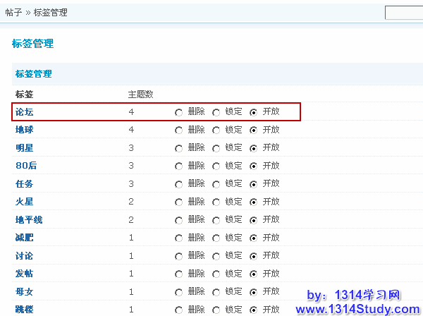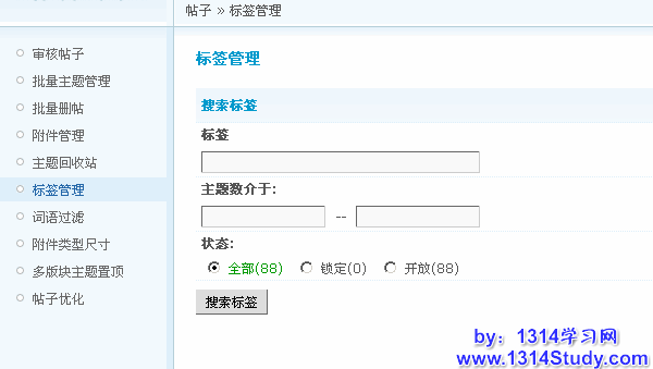 标签作为论坛主题横向关联的工具,极大地减轻了管理员的分类工作。对于这些标签的管理,管理员可以通过标签管理功能来实现。论坛需要首先打开主题标签功能,否则无法使用标签管理。