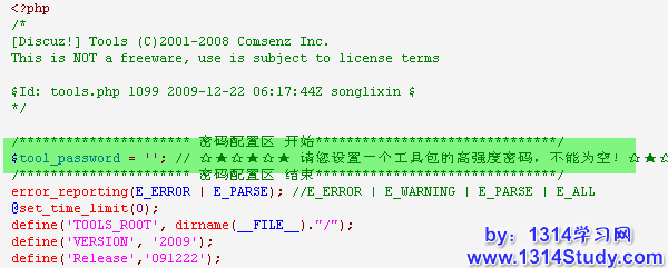 下载压缩包,打 tools.php 文件,在密码设置区域设定 tools 的密码: