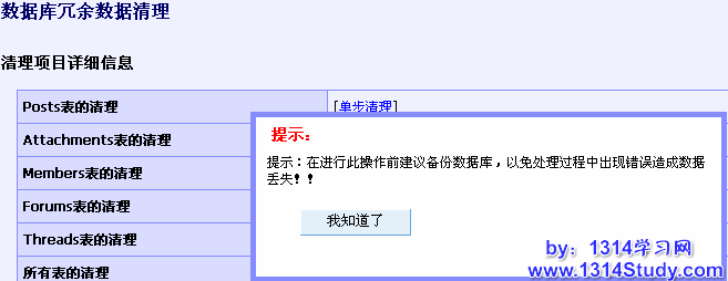 该功能可以清理数据库表的一些冗余数据。