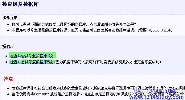 1、检查或修复数据库,对所有数据表进行检查修复工作。