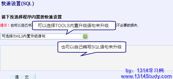 此功能适合高级用户,可以执行一些对数据库操作的 SQL 语句。书写SQL执行,不过请确保您知道该SQL的用途,以免造成不必要的损失。