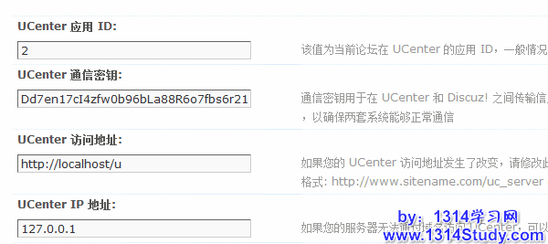 请根据 UCenter 中的对应信息,详细设置下面的信息即可。