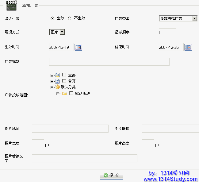 是否生效:是指广告是否在前面显示,如果选择否,则添加好的广告不会在前台显示。