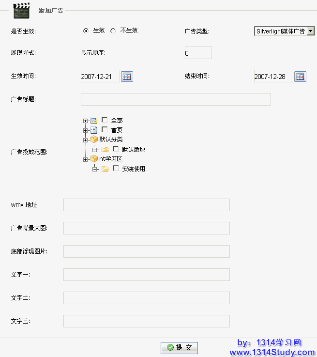 wmv 地址:是指广告的wmv地址,如:http://www.xxx.com/yyy.wmv