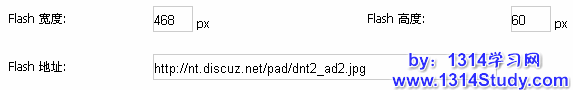 与其它展示方式不同的是需要填写Flash 宽度、Flash 高度和Flash 地址,如下图所示: