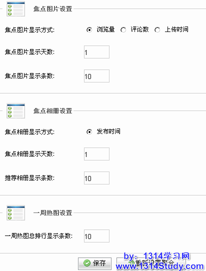 这里可以设置相册首页“一周热图总排行”的显示条数。
