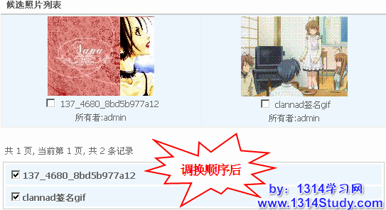 将要推荐的照片下方的复选框勾上,然后拖动下方列表中的项目可以设置显示顺序。如下图所示: