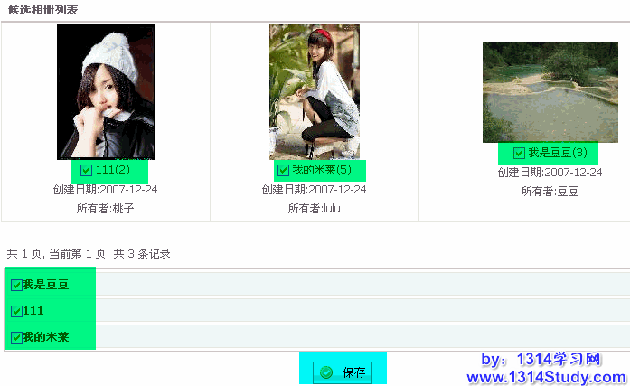 搜索到相册之后,请选择要在首页的相册,然后点击“保存”,如下图。
