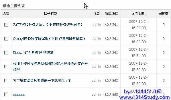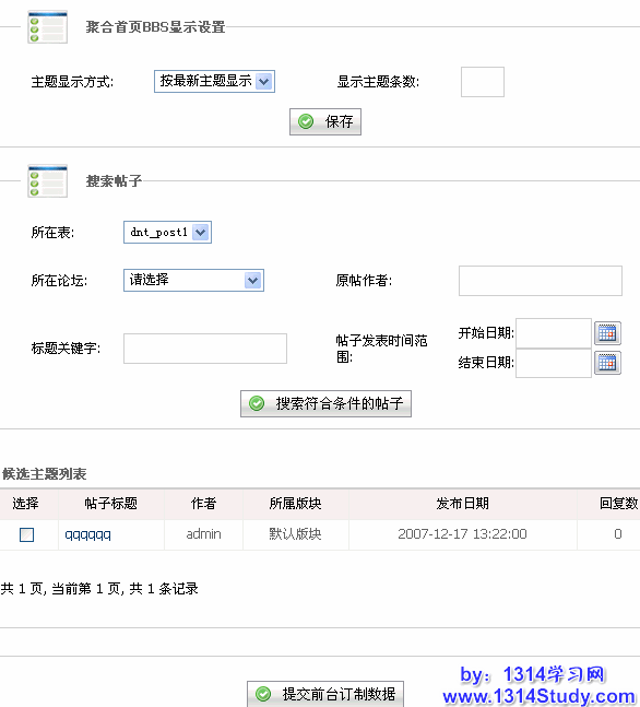 设置好这些条件之后,点击搜索符合条件的帖子,就可以将满足这些条件的帖子分页显示了,我们称之为候选主题列表,如下图所示: