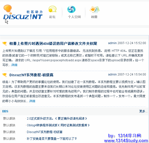 Discuz!NT 包含了论坛、个人空间、相册等模块,除了常规的论坛页面作为首页之外,还支持聚合首页的功能。主要是将论坛、个人空间和相册里的一部分站长认为比较好的信息放到首页进行展示,这样做的效果就是可以将 Discuz!NT 系统作为一个门户型的网站进行布置,可以说是操作简单方便,内容能够迅速充实。下面就给大家讲解一下如何在聚合首页展示论坛数据。