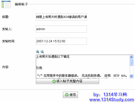 你可以编辑帖子的标题、发帖人、发帖时间以及内容,同时可以点击读取帖子完整内容来读取整篇帖子,如下图所示: