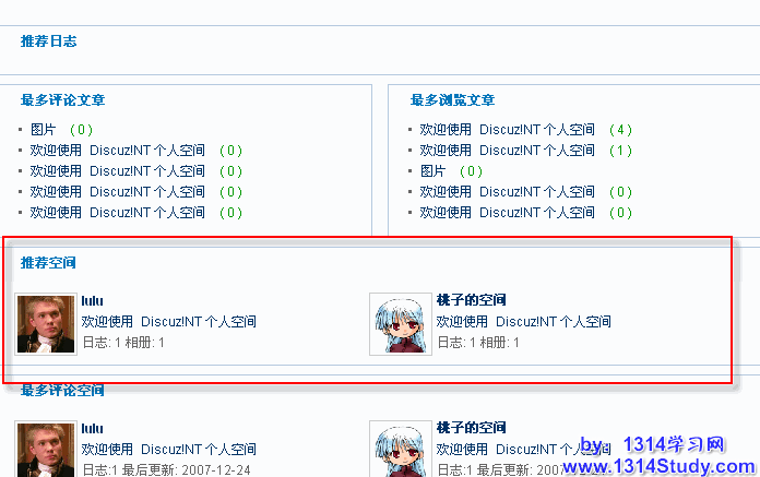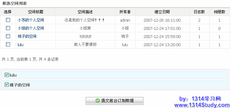 通过空间所有者,日志关键字,日志发表范围来搜索符合你需要的个人空间来展现到个人空间的首页去。