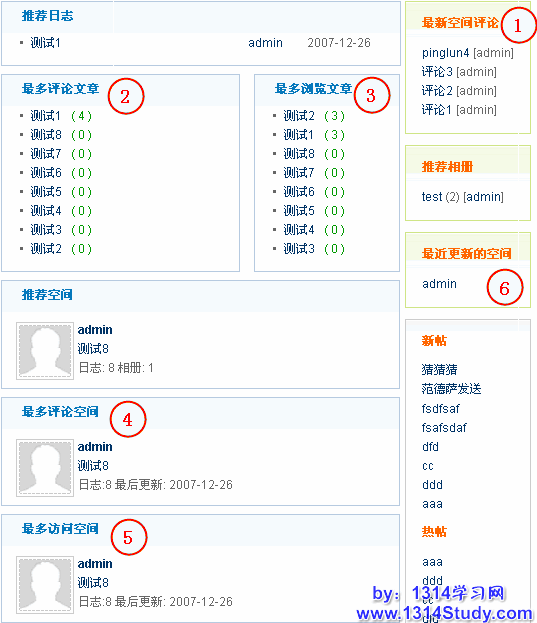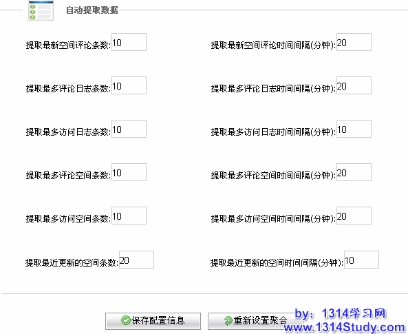 在这里主要涉及个人空间首页自动显示数据的设置。设置每个项目的显示条数以及提取间隔的周期。其对应关系如下: