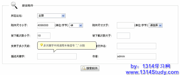 发表于多少天以前:搜索N天前上传的附件,不填写为不限制。