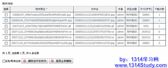 选择附件原名前面的复选框,然后点击上图中的“删除选中的附件”。
