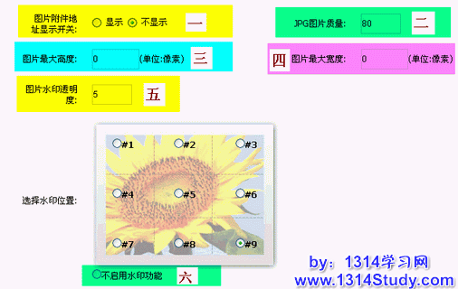 4、图片最大宽度:在此设置图片的最大宽度,0为不受限制,本设置只适用于bmp/png/jpeg格式图片,如果图片高度超过此设置,将不能发布。