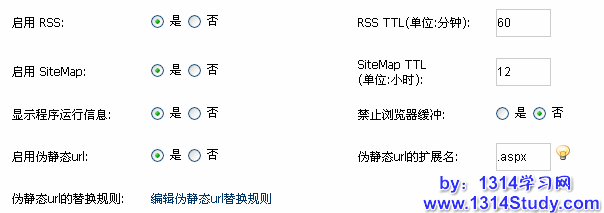 - 7)启用伪静态 url:只有启用该设置,伪静态 url 设置才会生效。