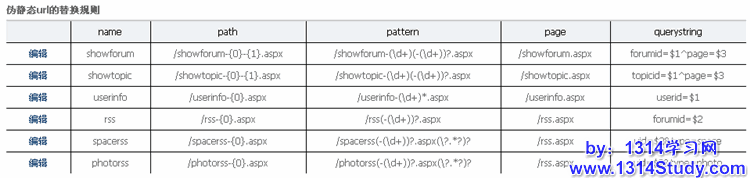 - 9)伪静态 url 的替换规则:此处功能会实现网页链接的地址重定向的正则式校验内容,当您修改时请谨用。修改伪静态 url 的替换规则的界面如下图:
