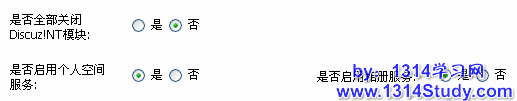 - 1)是否全部关闭 Discuz!NT 模块:暂时将 Discuz!NT 模块关闭(包括论坛、个人空间、相册等),其他人无法访问,但不影响管理员访问。
