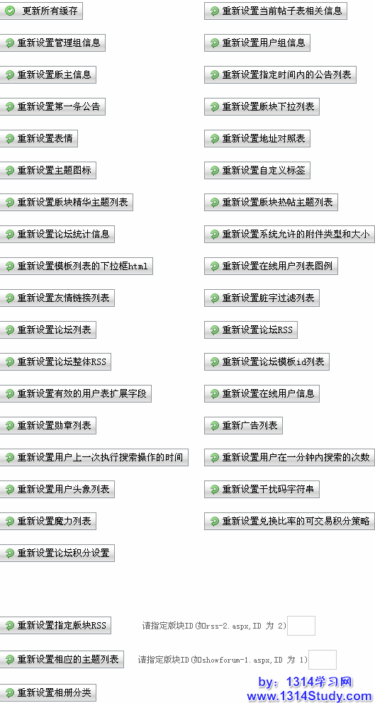 4、重新设置论坛 RSS:用户通过前台的 RSS 可以订阅到论坛的新的帖子,这时候你可以通过更新这块的缓存来更新 RSS 订阅的新的帖子。当然,RSS 是自动更新的,只不过你觉得想立即更新的话,可以利用此缓存更新来达到你的效果。
