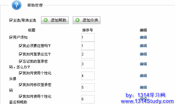 登录论坛后台,全局,其他设置,论坛帮助,即可看到如下图所示:
