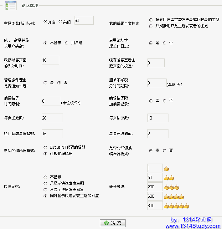 分为:不显示、只显示快速发表主题、只显示快速发表回复、同时显示快速发表主题和回复四种选项。