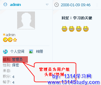 浏览帖子时用户头衔/级别的衡量尺度。如果选择用户组,则以用户组名称来显示。如下图所示: