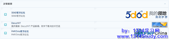 上图中可以看到系统默认自带一个 Discuz! 官方站点的友情链接,前台显示如下图所示: