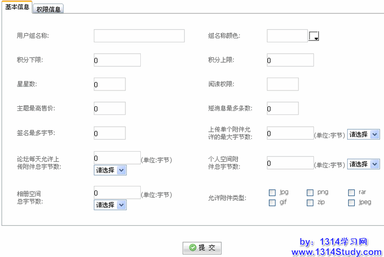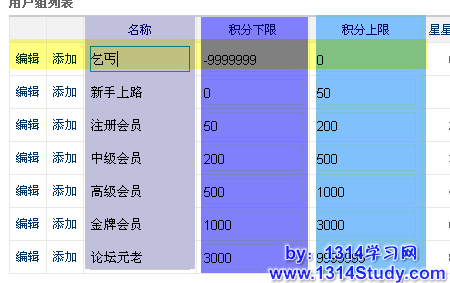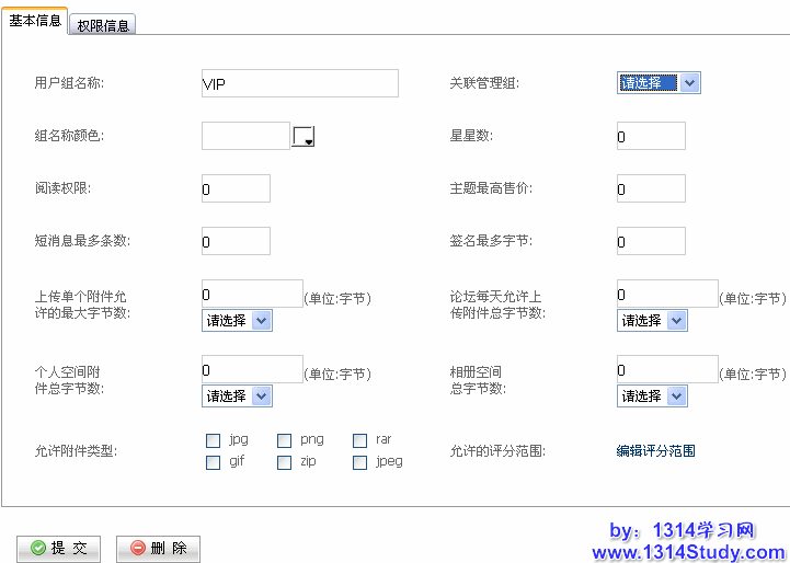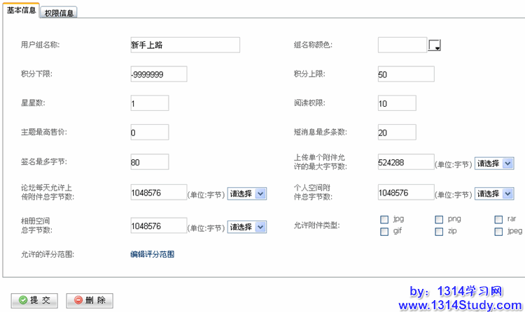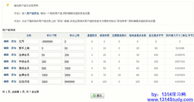 这里需要注意一点的就是: 增加用户组时积分的上限和下限必须在已有的某个用户组积分上下限范围之内。