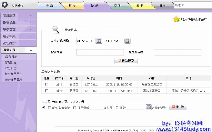 进到系统的后台 => 论坛 => 运行记录,所有的记录一目了然,如图下图所示: