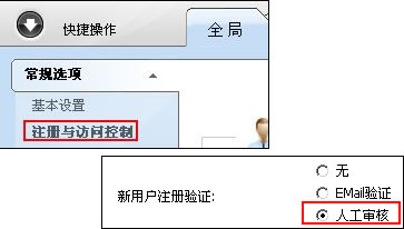 请登录系统后台 => 论坛 => 审核管理 => 审核新用户