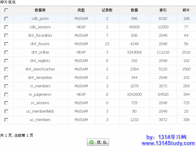 这里要注意的一点是优化的时候要把论坛关闭,以免碎片太多,对前台的发帖和访问有影响。