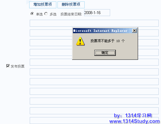 设定发布投票包含的最大选项数,如下图所示: