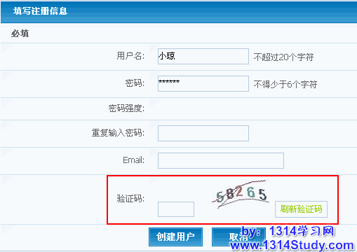 提交后返回到注册页面即可看到验证码,如下图所示: