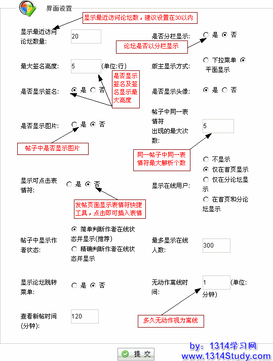 后台 => 论坛 => 常规选项 => 界面设置,即可看到下图所示: