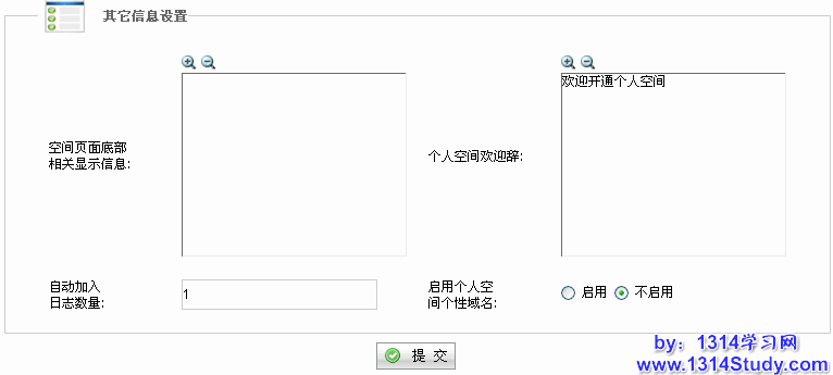 - 2) 个人空间欢迎辞:该内容将会在用户开通空间时作为第一篇日志发表,不发表请留空