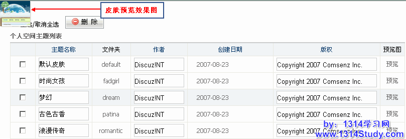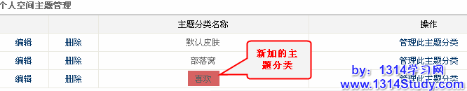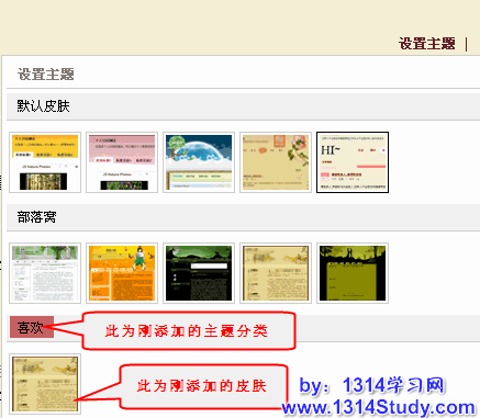 c. 回到自己的空间首页,设置主题,刚刚新增加的主题已经显示出来了,如下图所示: