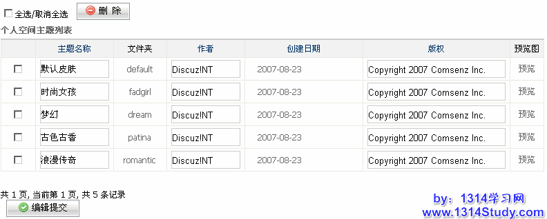 b. 然后回到Discuz!NT 的后台 => 空间 => 个人空间管理 => 主题管理