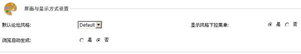 (2)显示风格下拉菜单。设置论坛底部是否显示切换风格的下拉列表框。默认开启。