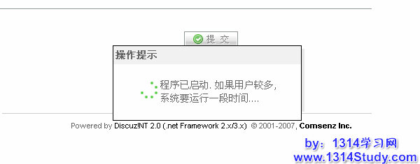3、点击“提交”按钮之后,程序将会按照填写的用户组发送短消息。如果需要发送的会员数量较多,发送邮过程将比较耗时,这时你也可以进行其他操作,程序会在后台执行短消息的发送。如下图所示: