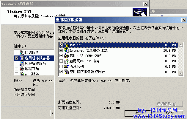 首先打开[开始]菜单,然后依次打开控制面板→添加或删除程序→添加/删除Windows组件,接着在Windows组件向导内找到 [应用程序服务器] ,按照下图所示选择对应的组件。