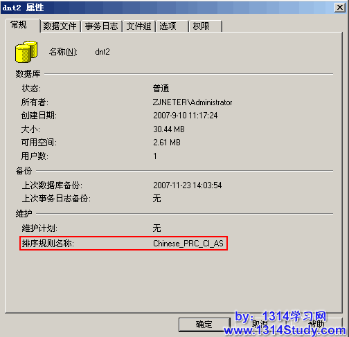打开企业管理器,在[数据库]上单击鼠标右键,再弹出的菜单中选择[新建数据库]。新建一个名为 dnt2_db 的数据库。请根据自身服务器的情况选择数据库文件和日志文件存放的位置。注意:[排序规则] 选择为 Chinese_PRC_CI_AS 。