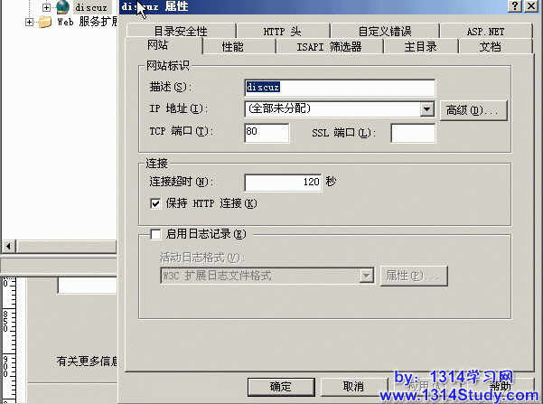 在您新建立的站点上点击鼠标右键,选择[属性]进入站点的属性设置。一般情况下单独设置一下日志的保存目录,并且要启用日志以帮助你了解站点被人访问的情况。