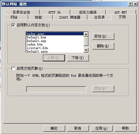 最后在文档选项中添加 index.aspx 类型的默认页。