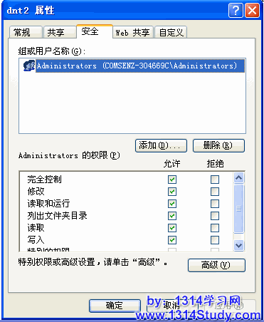右键单击 dnt2 文件夹,在弹出的属性对话框中,选择[安全]标签页。